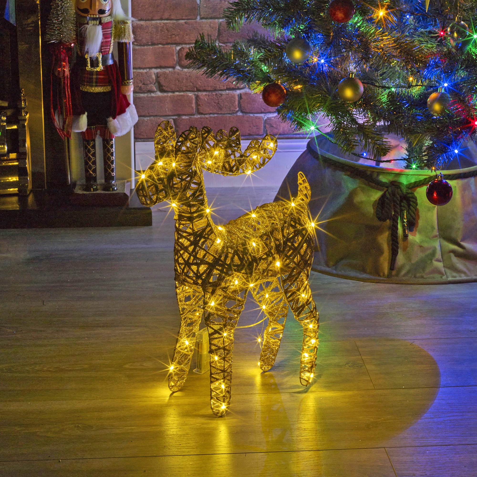 - CHRISTMAS REINDEER - Put your friends and family in the Holiday Spirit by creating a stunning visual display with these Light up Reindeers. They feature Classic Christmasy Colours like Gold, Silver and White and are also available with sparkling Glitter for added effect. They are sure to instil the Christmas Mood in the heart of their beholders.